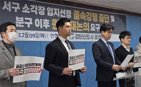국문 기사◆ 검단 주민 1만3천여명 서명부 전달 인천 서구 청라자원순환센터 소각장 이전이 난항을 겪고 있다. 검단 주민들이 입지선정 절차의 전면 중단을 요구하고 나섰다. 검단신도시 총연합회는 9일 인천시에 소각장 이전 부지 선정 절차 중단을 요구하는 주민 1만3천여명의 서명부를 전달했다. 총연합회는 입지선정위원회 구성이
