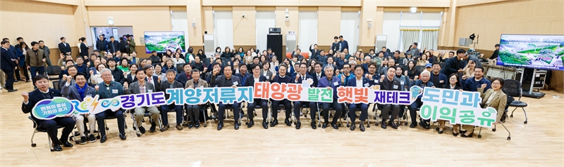 김 지사는 "저류지 위에 태양광 패널을 설치해 태양광 발전소로 만들겠다"며 "경기도는 기후위기 대응과 재생에너지에 가장 적극적으로 나서고 있다"고 설명했다. 경기도는 계양천 저류지에 태양광 패널 565개를 설치한다. 발전량은 약 10.8MW로 연간 생산량은 약 15GWh에 달한다. 이는 4인 가구 기준 4천 세대가 1년 동안 사용할 수 있는 양이다. 김 지사는 "도민들이 조합원으로 참여해 발전 수익을 가져갈 수 있도록 하는 사업"이라며 "1석3조의 사업"이라고 강조했다. 경기도는 도민 5만 명 이상이 참여하는 이익공유형 협동조합 컨소시엄을 구성하고 발전 수익을 참여 도민에게 배당할 계획이다. 예상 수입은 연 34억 원이다.