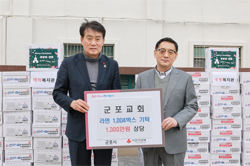 군포시 교계와 지역 기업들이 연말을 맞아 나눔에 나섰다. 군포교회(위임목사 김철웅)는 12월 10일 라면 1,004박스(20개입)를 군포시에 기탁했다. ㈜진한(대표 배성한·배진문)은 12월 11일 현금 1,000만원을 기탁했다. ㈜동양 건재부문 안양공장(공장장 정정태)도 같은 날 현금 500만원을 기탁했다. 군포2동(동장 노승민)은 사단법인 한국은빛나눔복지협회(이사장 이건형)로부터 라면 100박스를 전달받아 같은 날 기탁식을 개최했다.