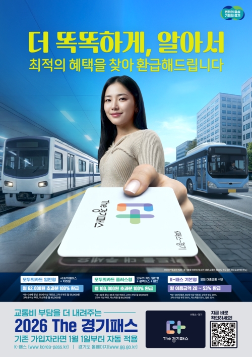 Refund thresholds are 62,000 won for standard and 100,000 won for plus. Youth, seniors, and two-child households receive 55,000 won standard and 90,000 won plus. Three-child households and low-income groups receive 45,000 won standard and 80,000 won plus. Gapyeong-gun and Yeoncheon-gun receive approximately 10,000 won additional discount as population decline areas. While K-Pass defines youth as ages 19-34, Gyeonggi Province extends benefits to ages 19-39. Existing users automatically receive benefits without registration, with the system selecting whichever yields the highest refund between percentage-based refunds (20-53%) and Card for All. Governor Kim Dong-yeon stated, "With Card for All benefits added, we will ensure more residents can use The Gyeonggi Pass this year." Subscribers surpassed 1.63 million as of January 5, 2026.