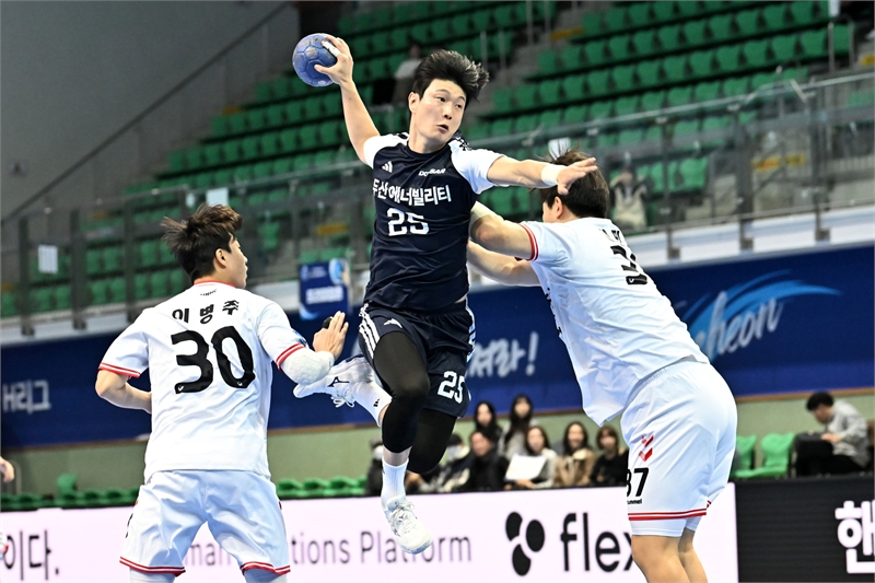 두산이 30일 오후 인천 선학체육관에서 열린 '신한 SOL 뱅크 2025~2026시즌 핸드볼 H리그' 남자부 1라운드 경기에서 하남시청을 25-22로 꺾고 2연승을 달렸다. 두산은 2승 2패(승점 4)로 3위에 올랐다. 하남시청도 2승 2패지만 4위로 한 계단 내려앉았다.두산은 이한솔과 김준영이 각각 5골, 전영제가 4골